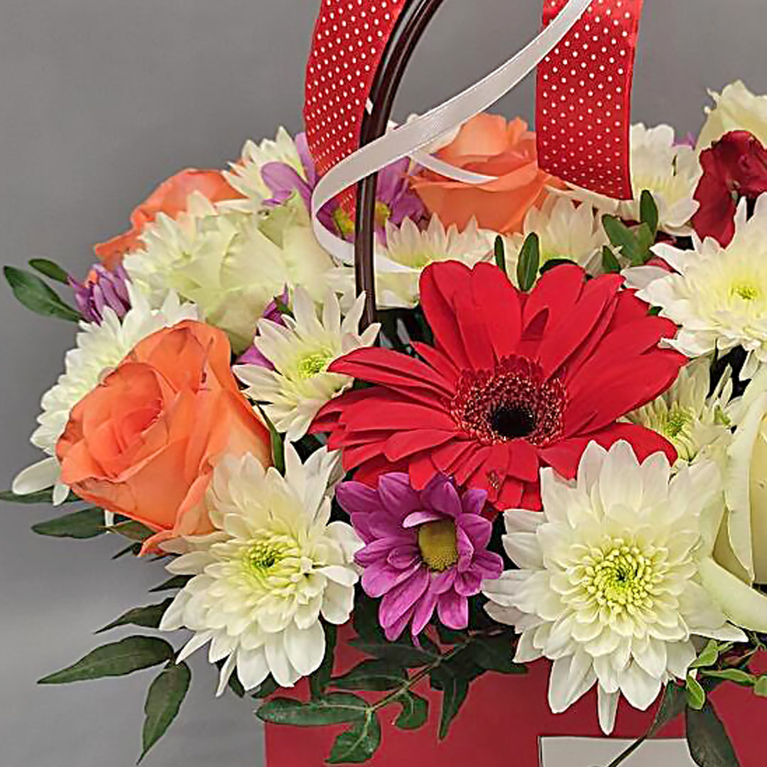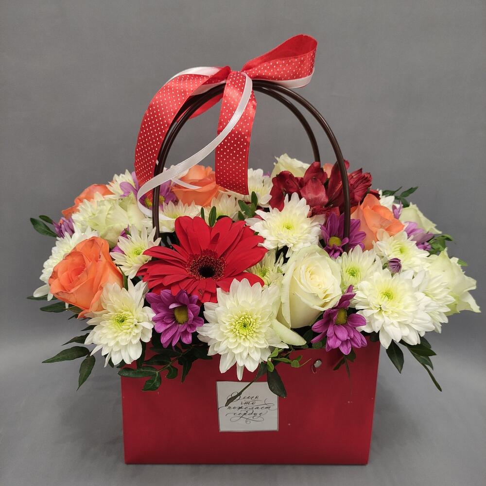 Сумочка с герберой и хризантемой "Яркое настроение" арт. 50832