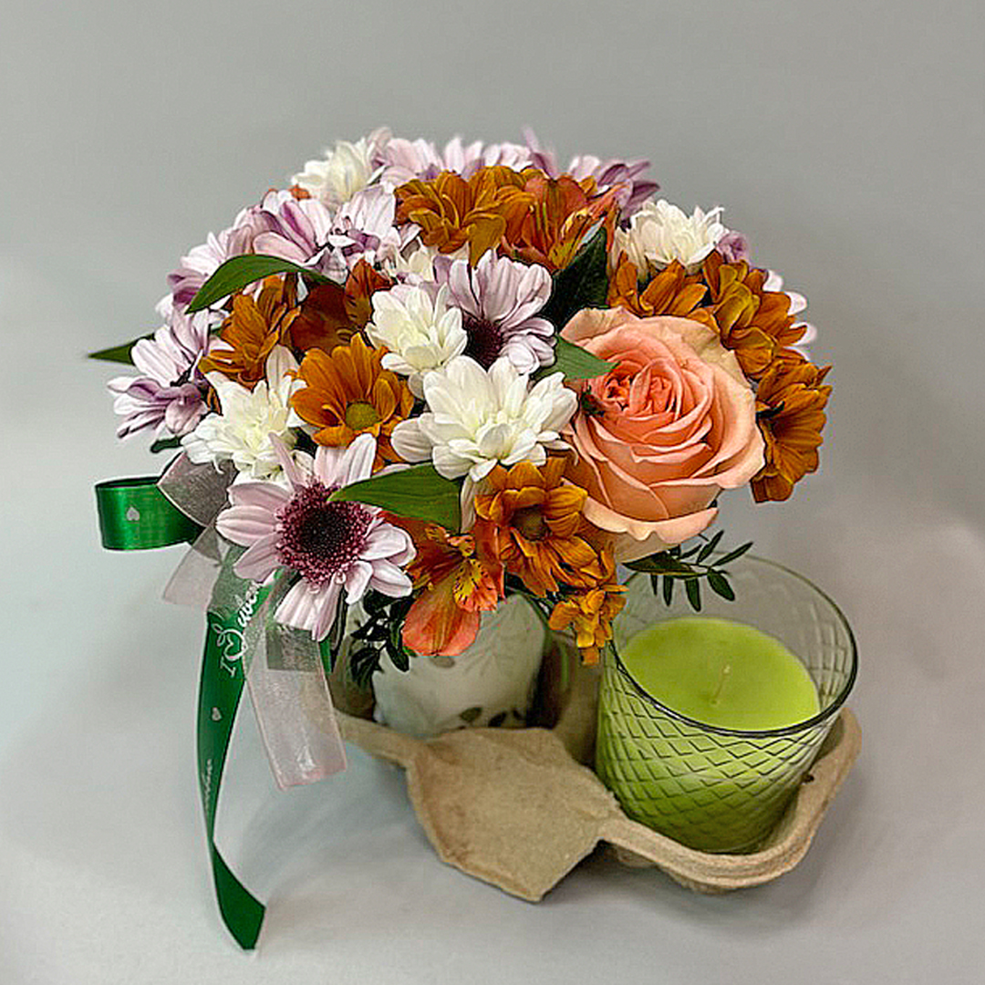 Сет "Лайм". Набор стаканчики с цветами и аромасвечой 70402