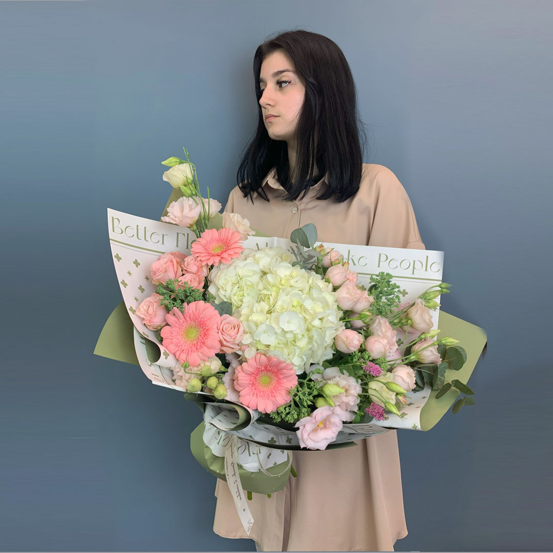 • Букет "Улыбка ангела" из розы эквадор и гипсофилы. арт. 6262