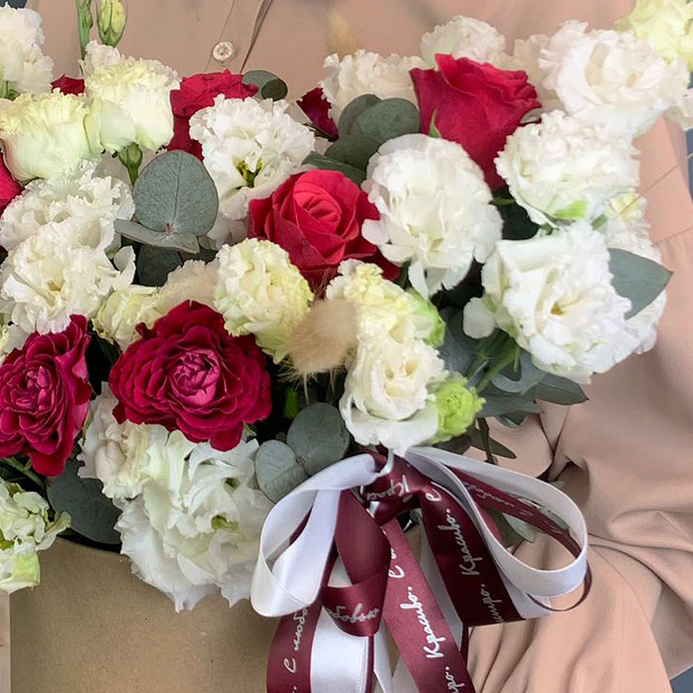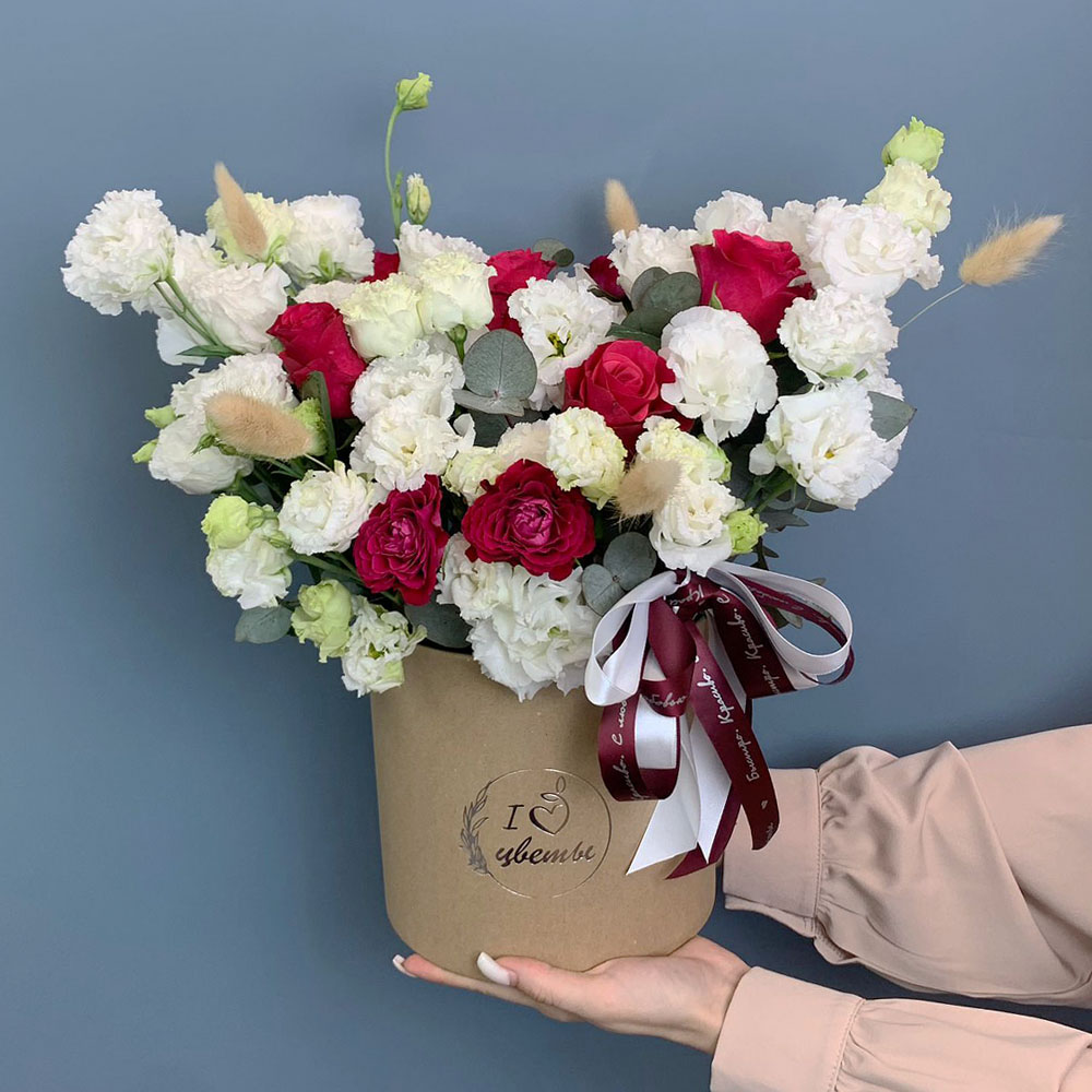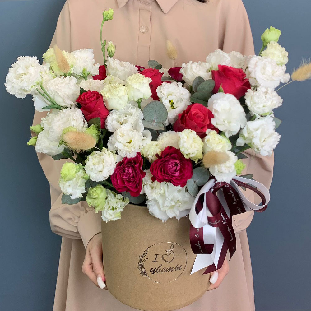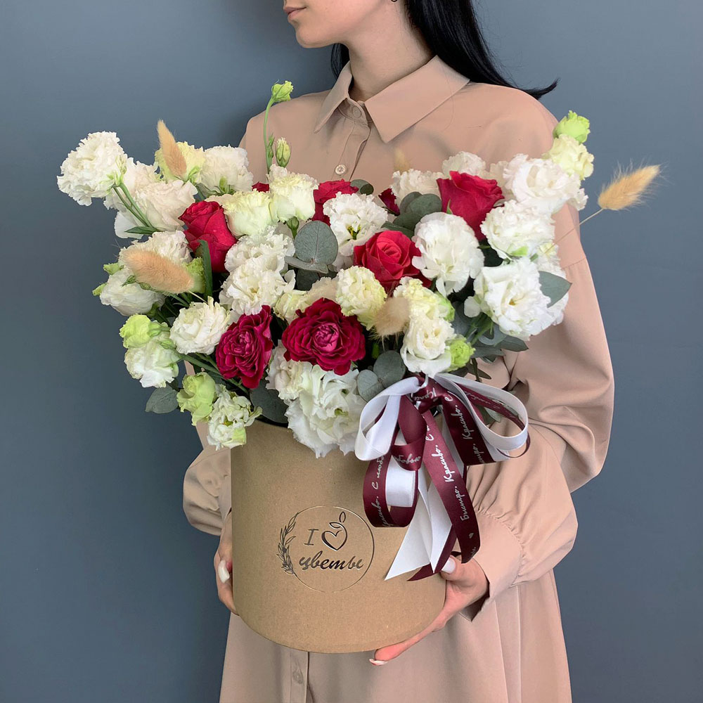 Коробка с розами и эустомой арт. 67000