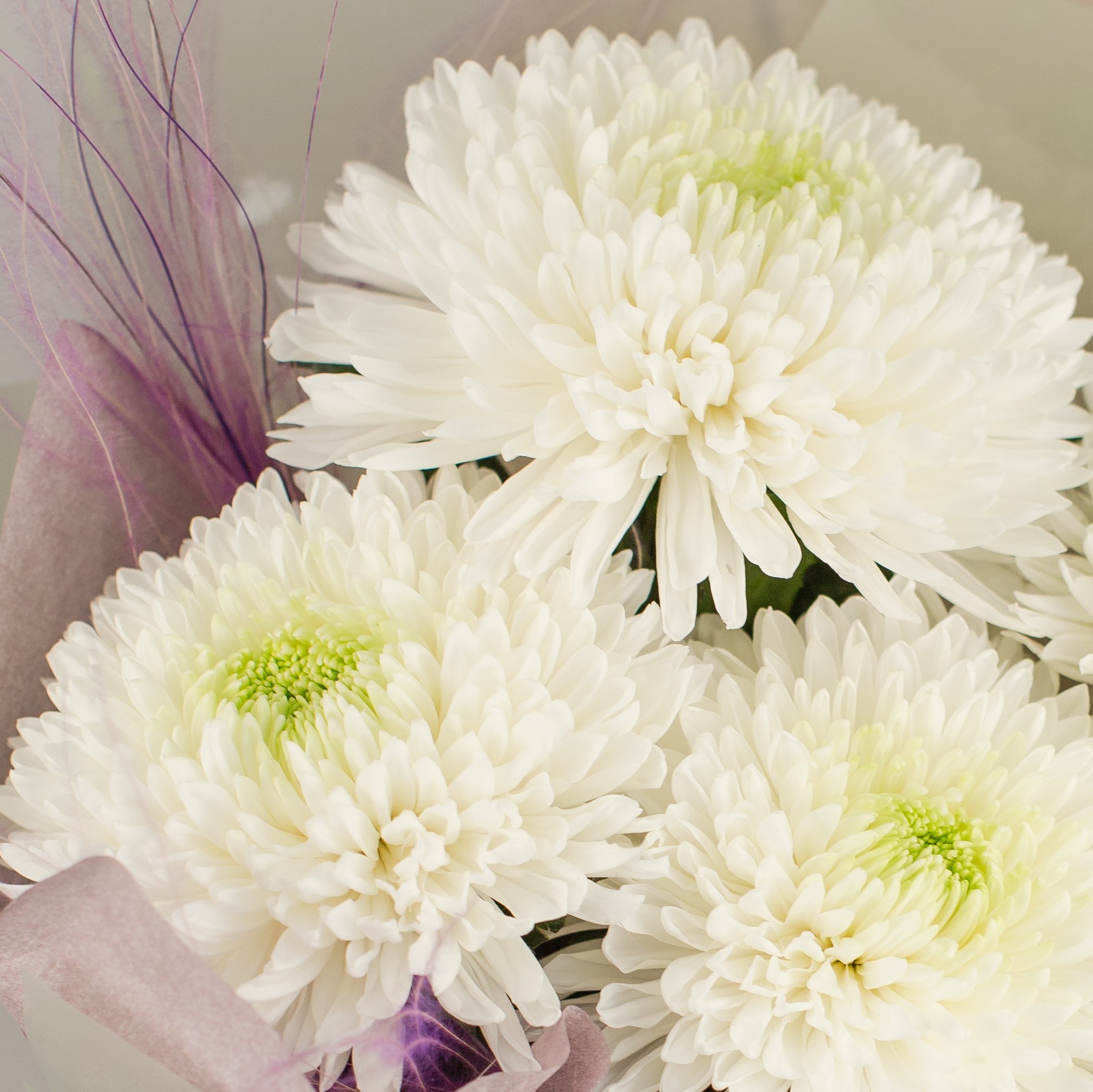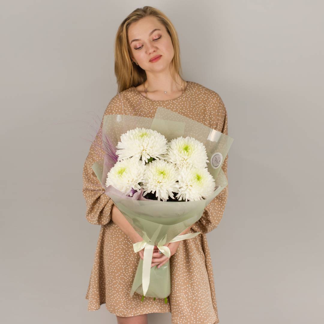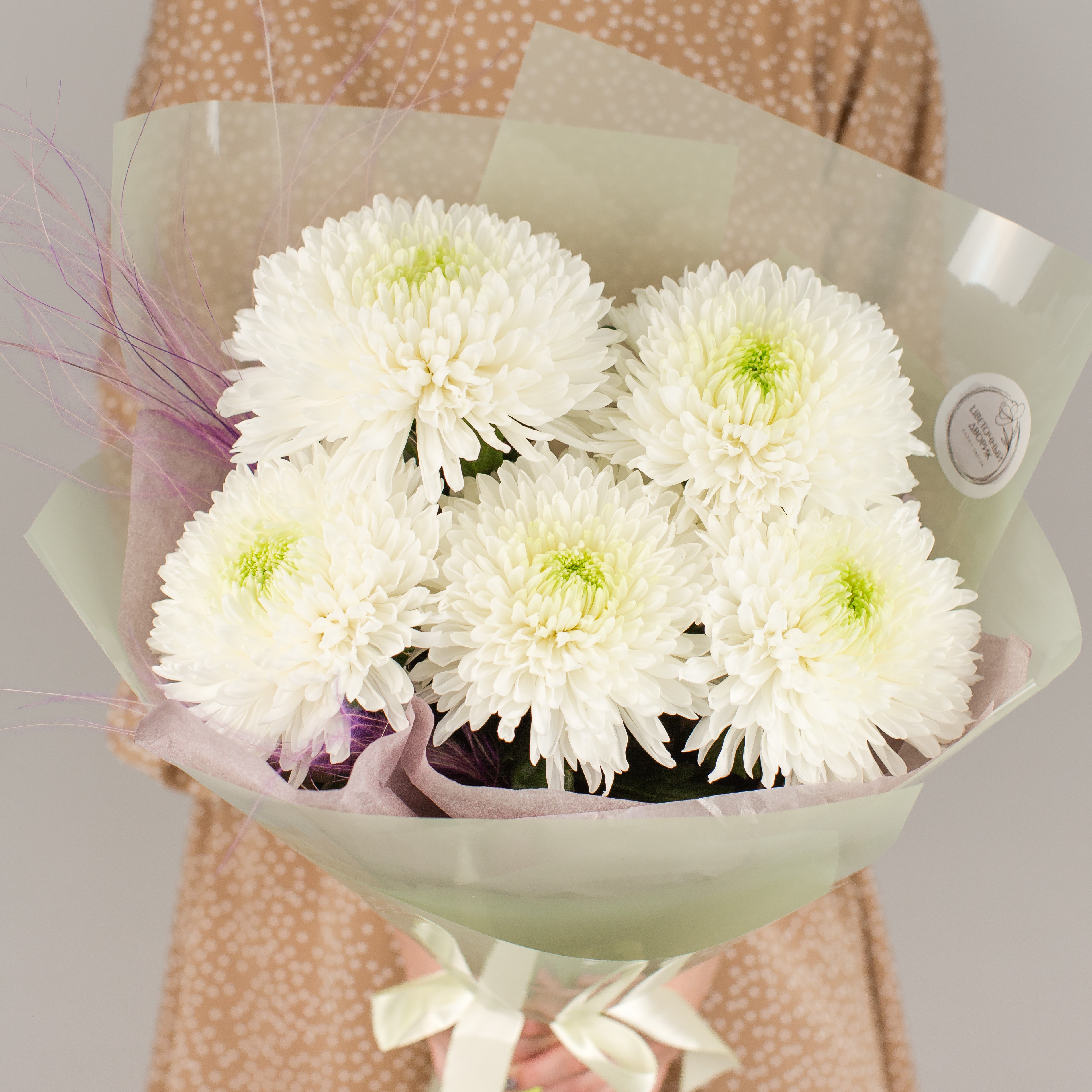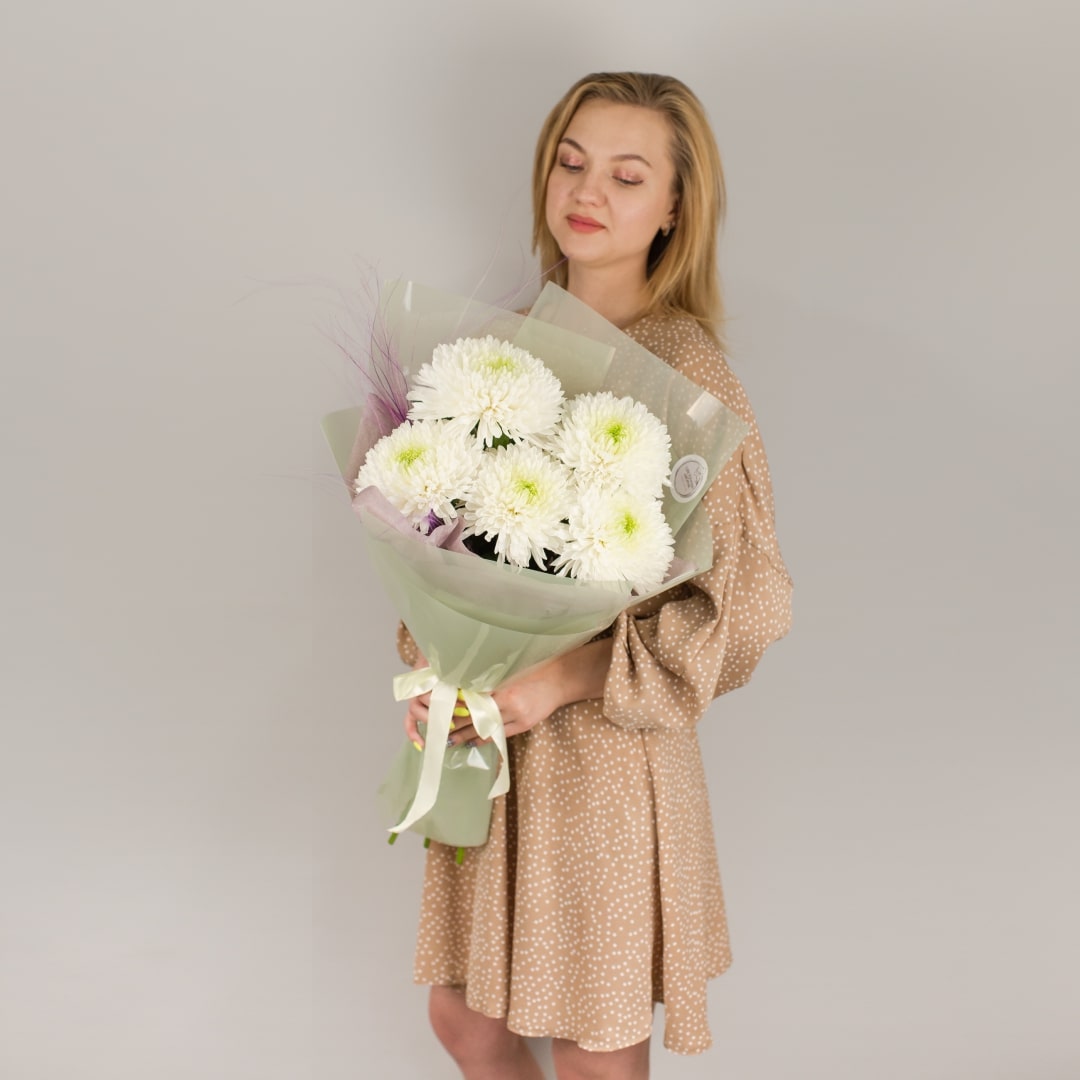 Букет из одноголовых белых хризантем с сухоцветами арт. 50443